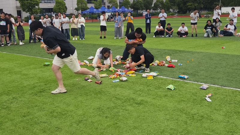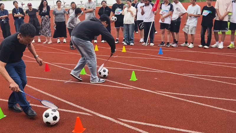 趣味比赛项目成为运动会上一道亮丽的风景线,双人30米背靠背夹球、袋鼠跳接力赛、巨人脚步、搭桥过河等学生趣味比赛项目,也有旋转推球跑、南水北调、班主任-零食大作战等教职工趣味比赛项目,这些比赛项目不仅能锻炼师生的身体素质,还极大地培养了团队之间的协作意识和集体荣誉感,让师生在共同拼搏中深刻体会到团结就是力量的真谛。