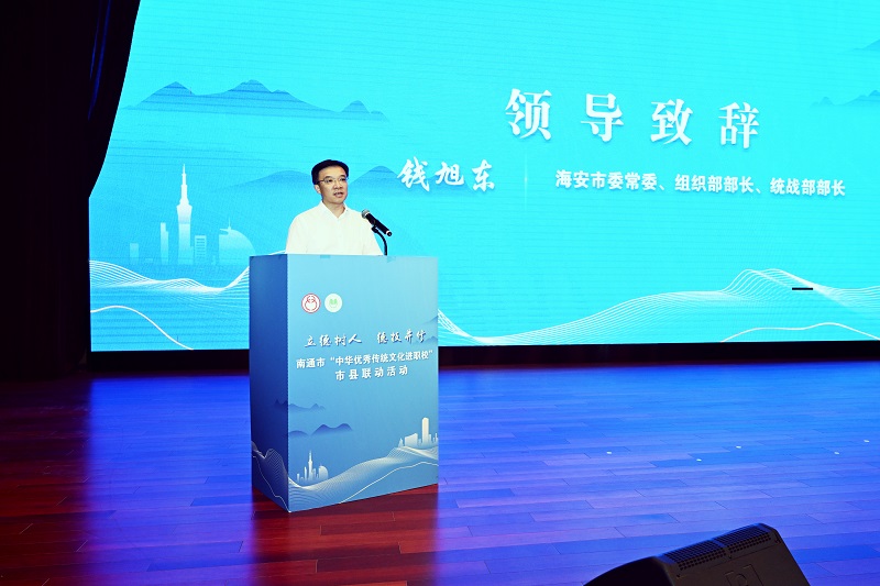 钱旭东在致辞中表示,海安市中华职教社自成立以来,坚持以习近平新时代中国特色社会主义思想为指导,团结全市职教领域人士力量,充分发挥“统战性、教育性、民间性”优势,持续助力职业教育高质量发展。举行此次活动既是对省职教社相关工作部署的联合创新实践,也是对海安统战工作、职教社工作的激励和鞭策。海安将以本次活动为契机,充分挖掘海安本土文化资源,做好融合文章,开展各类实践项目,做实机制保障,进一步探索中华优秀传统文化融入职业教育的新路径,引导职校学生在传承实践中感悟文化魅力,助力培养出德技并修的新时代工匠。