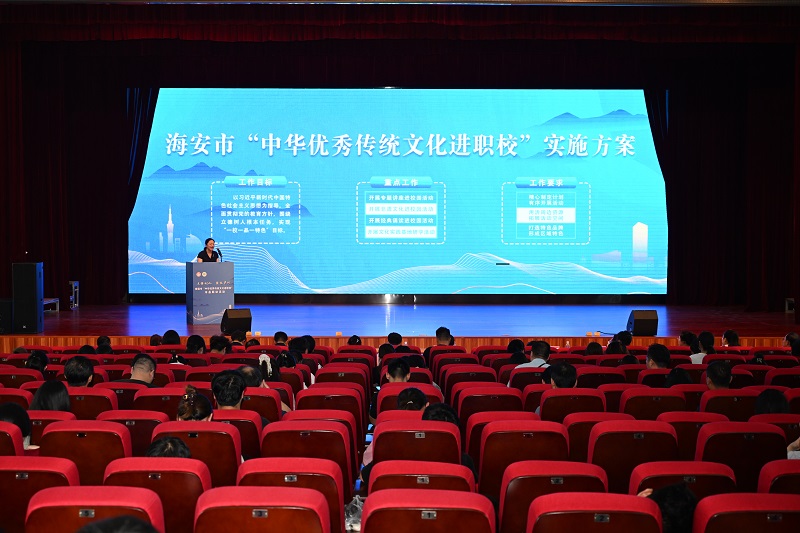 为深入贯彻落实立德树人根本任务,引导职校学生深刻认识、真切感知、自觉传承中华优秀传统文化,让文化瑰宝为职业教育注入精神动力,赋能职校生全面发展。7月4日,南通市“中华优秀传统文化进职校”市县联动活动在我校圆满举行。南通市委统战部副部长、市中华职教社副主任王文圣,海安市委常委、组织部部长、统战部部长钱旭东等出席活动。海安市中华职教社社员代表、职业院校生代表、优秀传统文化传承人代表等参加活动。