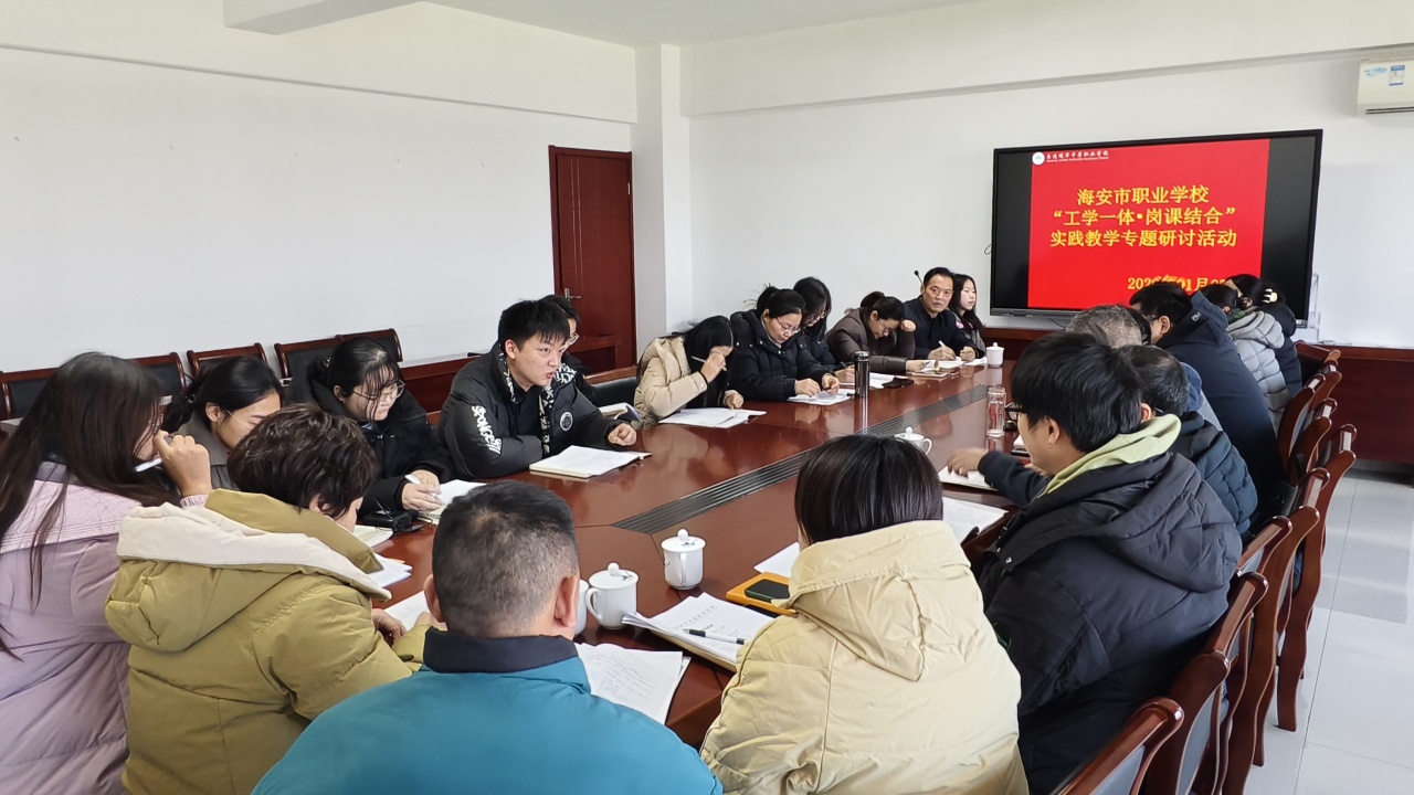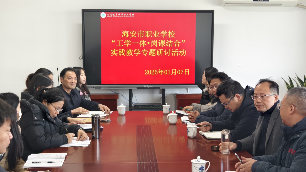 岁暮天寒,研思不辍。1月7日,海安市职业学校“工学一体•岗课结合”实践教学专题研讨活动在南通峻华中等职业学校成功举办,来自全市各职(技)校的教研负责人、教师代表及计算机、机电、英语教科研中心组成员齐聚一堂,共话课堂改革,共谋教学提升。