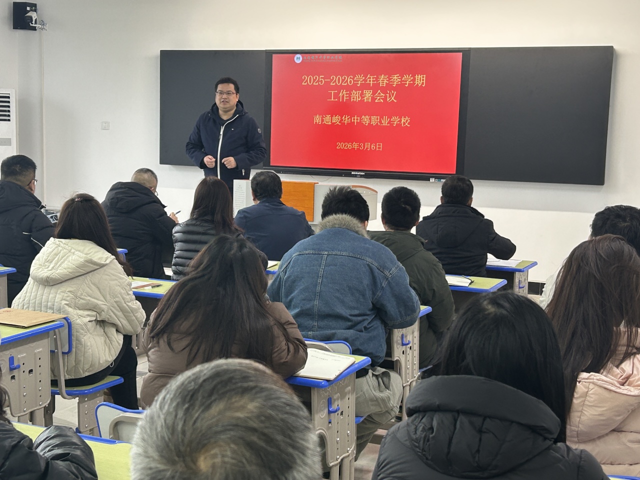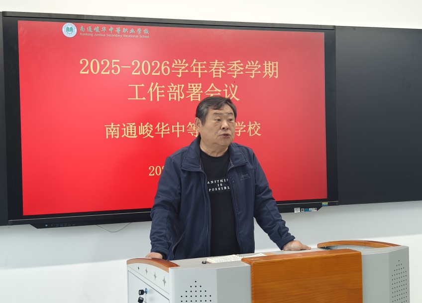 春回大地,万物复苏。伴随着2026年新春的奋进号角,3月6日上午,南通峻华中等职业学校全体教职员工齐聚上湖新校区,召开2025-2026学年春季学期工作部署会议。校长赵金波、学校领导班子成员出席会议。本次会议由常江副校长主持。