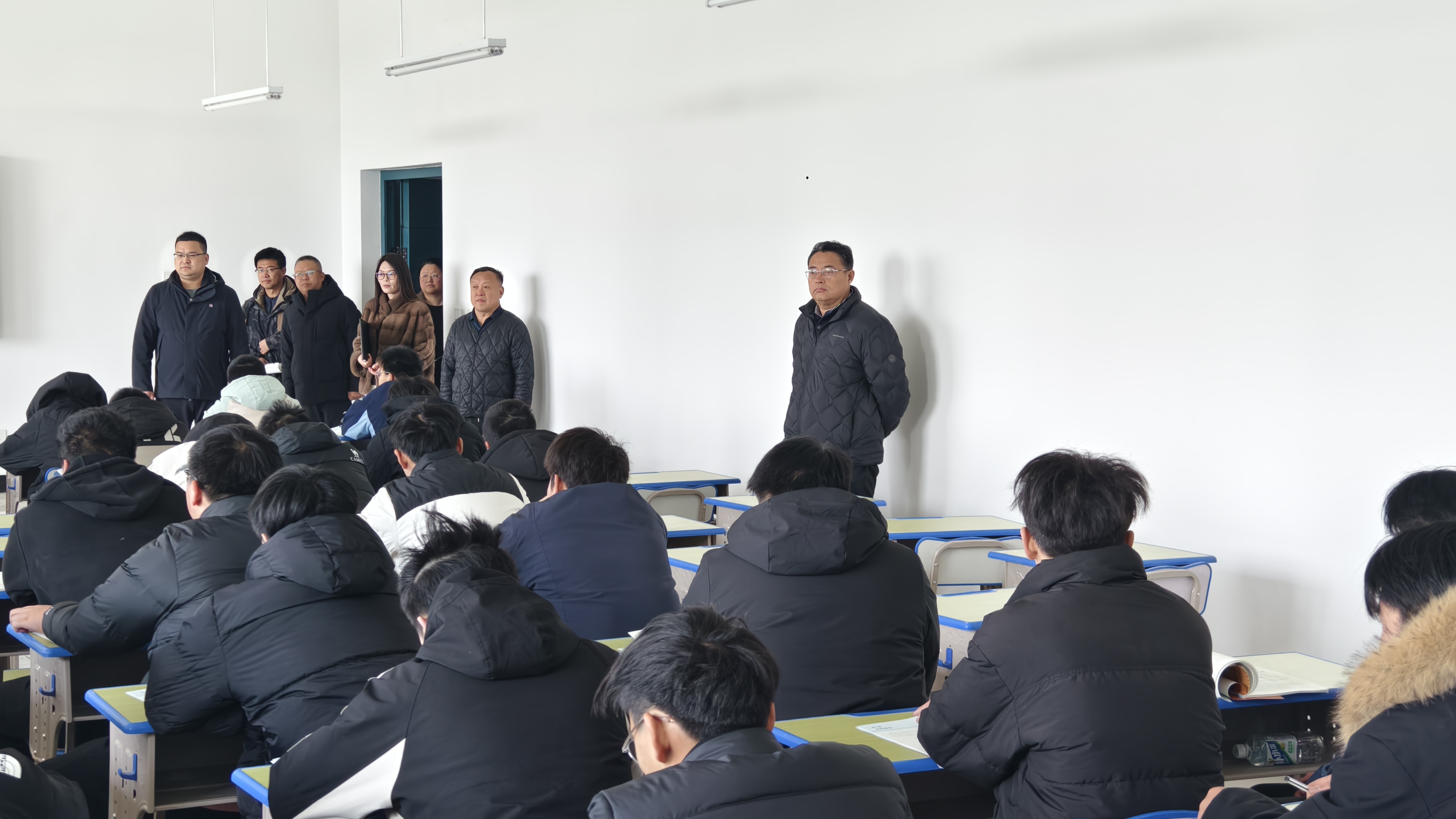 巡查听课过程中,校领导坚持“教学”、“安全”两手抓、两手硬。一手抓教学运行关键环节——从学生出勤到教材携带,从课堂纪律到听课状态;从教师到岗到课前准备,从授课方式到教学态度。一手抓新校区教学楼安全保障——从消防设施到用电安全,从应急通道到设备运行,逐一排查、不留隐患。