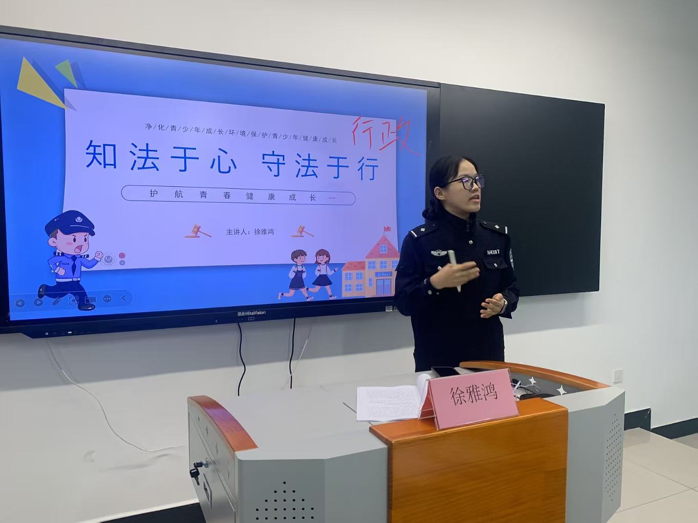 徐警官讲明暴力违法后果,年满16周岁即需承担刑事责任,案底终身伴随,影响升学、就业、参军。他提醒同学,矛盾纠纷要找老师、家长,不动手、不参与、不聚众。