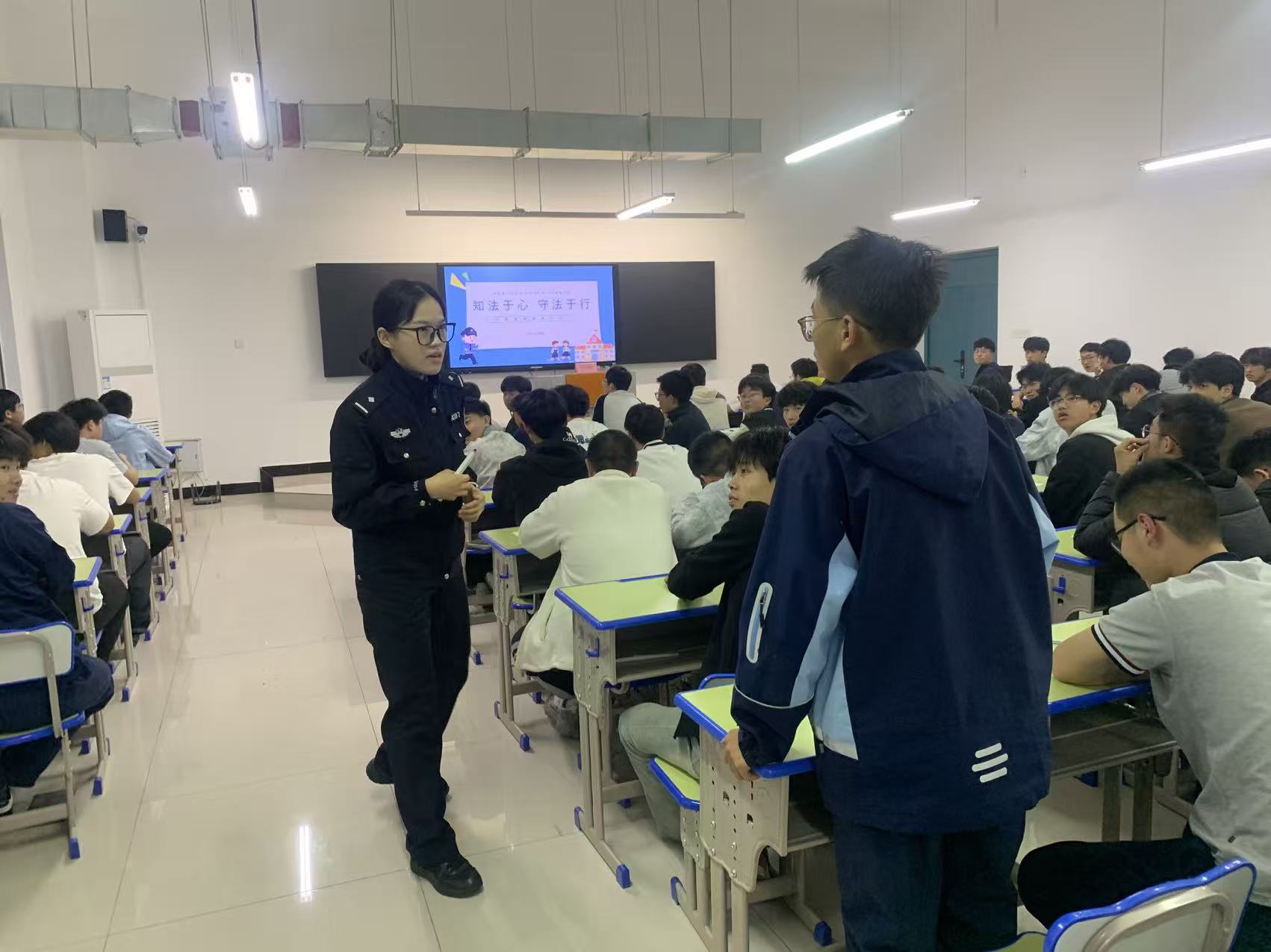 徐警官向全体同学发出倡议:主动学法懂法,约束自身行为,理性化解矛盾,自尊自爱自律,严守校规校纪,把法治意识刻在心中,以守法自律护航青春之路,做有底线、有素养、有作为的新时代中职学子。