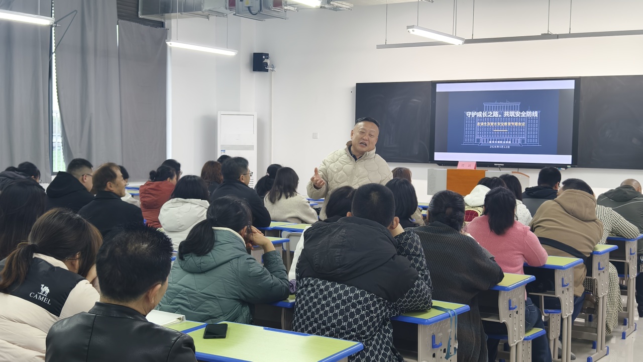 春雨淅沥,暖意绵长。为切实保障走读生人身安全,明确家校协同责任,4月12日,学工处召开走读生及家长安全教育专题会议。学工处贾波主任出席会议并讲话,以“守护成长之路,共筑安全防线”为主题,为全校走读生及家长讲授了一堂兼具指导性与警示性的安全教育课。