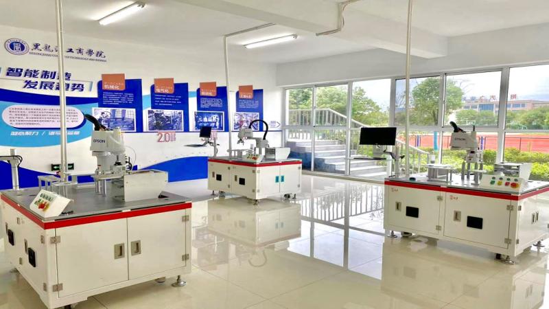 工业机器人实训室现有教师机和学生机共41套、六轴机械臂装置1套、四轴机械臂装置3套及相关配套设施。该实验室面向工业机器人技术应用专业,进行自动化技术和控制技术的一体化教学和技能实训为学生在工业机器人编程设计学习中进行技术性、设计性、综合性实验提供硬件基础。加强学生的动手能力和创新能力,配合相关软件、资源平台、仿真实训系统等,多方位培养学生独立思考、分析问题和解决实际问题的能力,提高实际应用和设计能力。