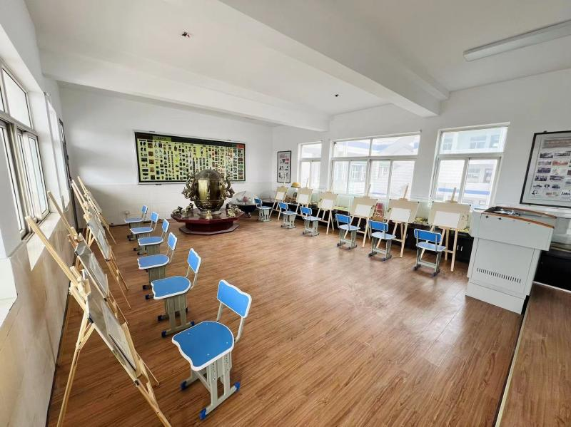美术专用教室是集教学、创作与展示为一体的专业艺术空间。室内配备标准化画架及可调光专业绘画灯,满足素描、色彩、速写等全场景教学需求;墙面设置磁吸式作品展示板与多功能收纳柜,分类存放丙烯颜料、水彩纸、陶泥等耗材及工具。智能化多媒体设备支持高清画作解析与创作过程演示,独立的洗笔水槽与通风系统确保安全环保。这里不仅是技法训练的实践场,更是激发艺术灵感、培育审美素养的创意摇篮。