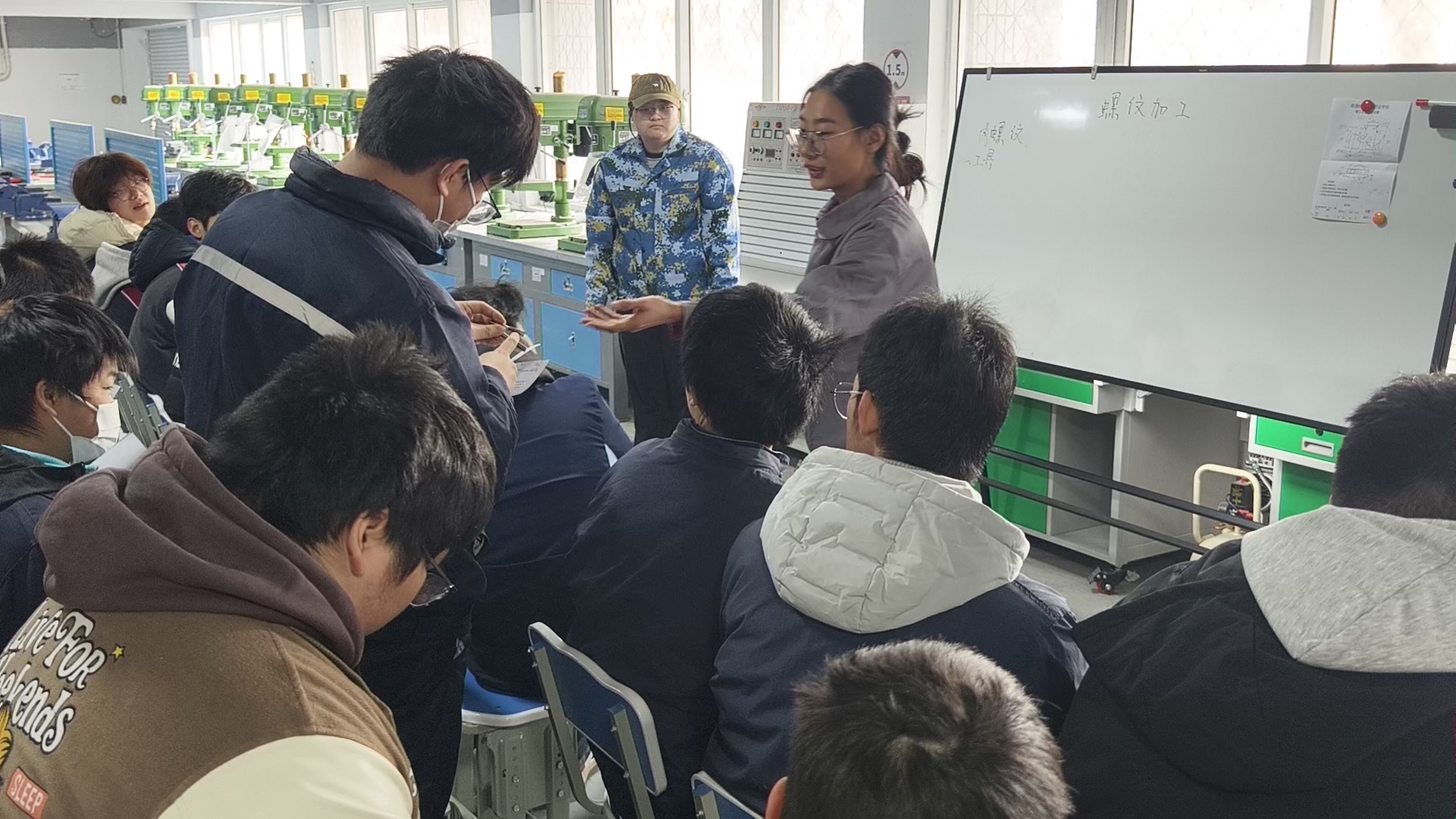 胡坚榴、王华湘老师执教的《钳工实训—螺纹加工》,以岗位需求为导向,融讲解示范与实操训练于一体,让学生在规范操作中锤炼技能、涵养匠心,彰显岗课对接、学做合一的育人成效。