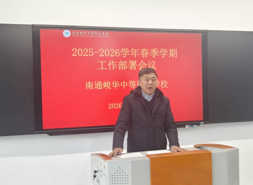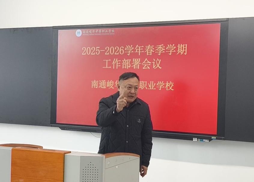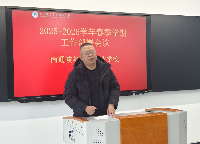 春回大地,万物复苏。伴随着2026年新春的奋进号角,3月6日上午,南通峻华中等职业学校全体教职员工齐聚上湖新校区,召开2025-2026学年春季学期工作部署会议。校长赵金波、学校领导班子成员出席会议。本次会议由常江副校长主持。